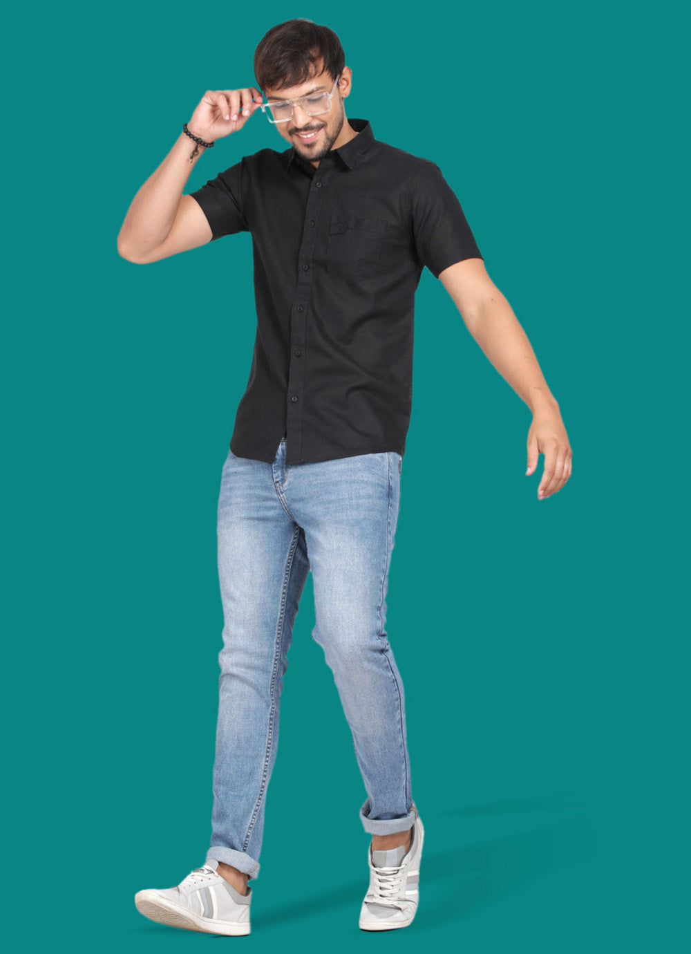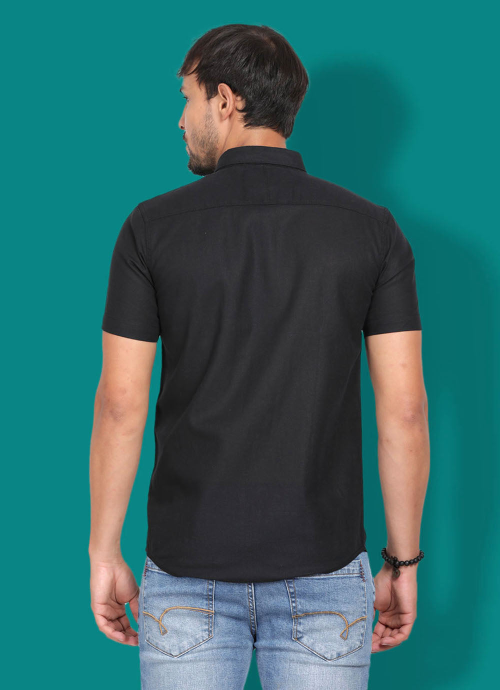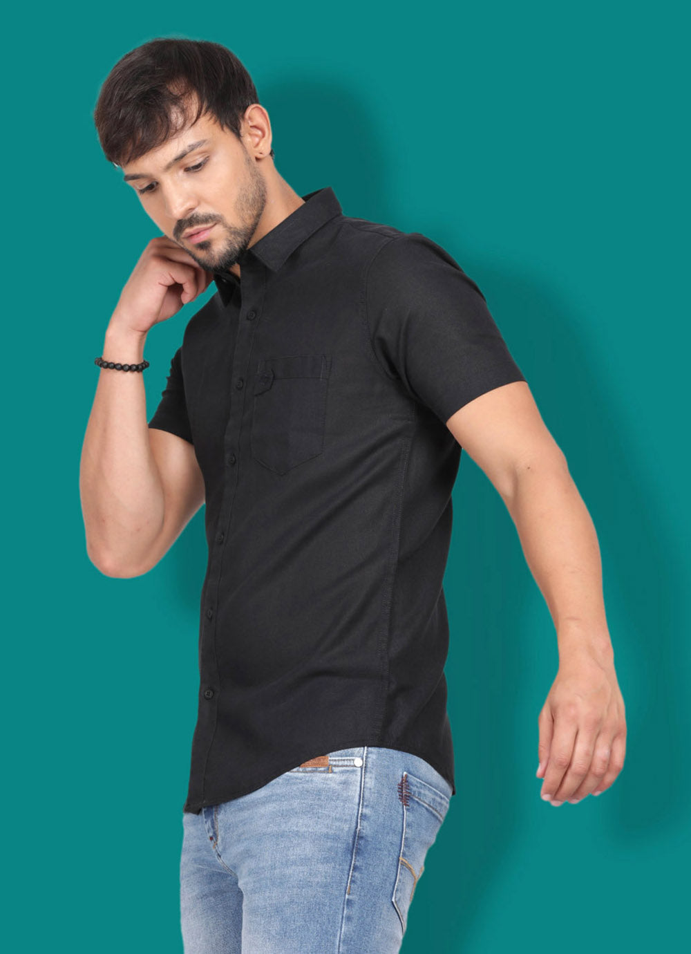 Introducing our Solid Black Shirt, a sleek and versatile addition to your wardrobe. Made with a blend of cotton and linen, this slim fit shirt offers comfort and style. Pair it with dark denim and Chelsea boots for a sophisticated and effortlessly cool look.