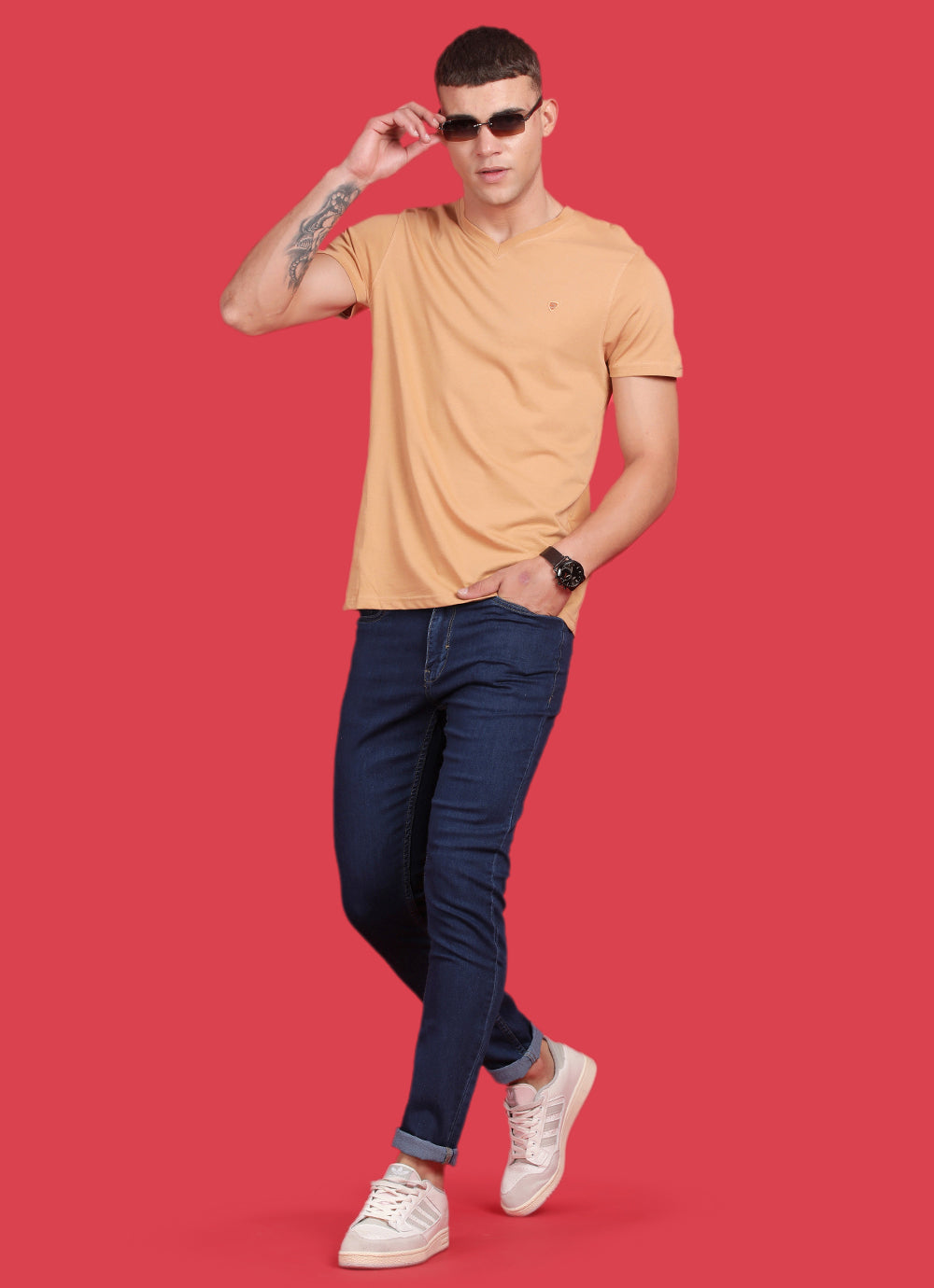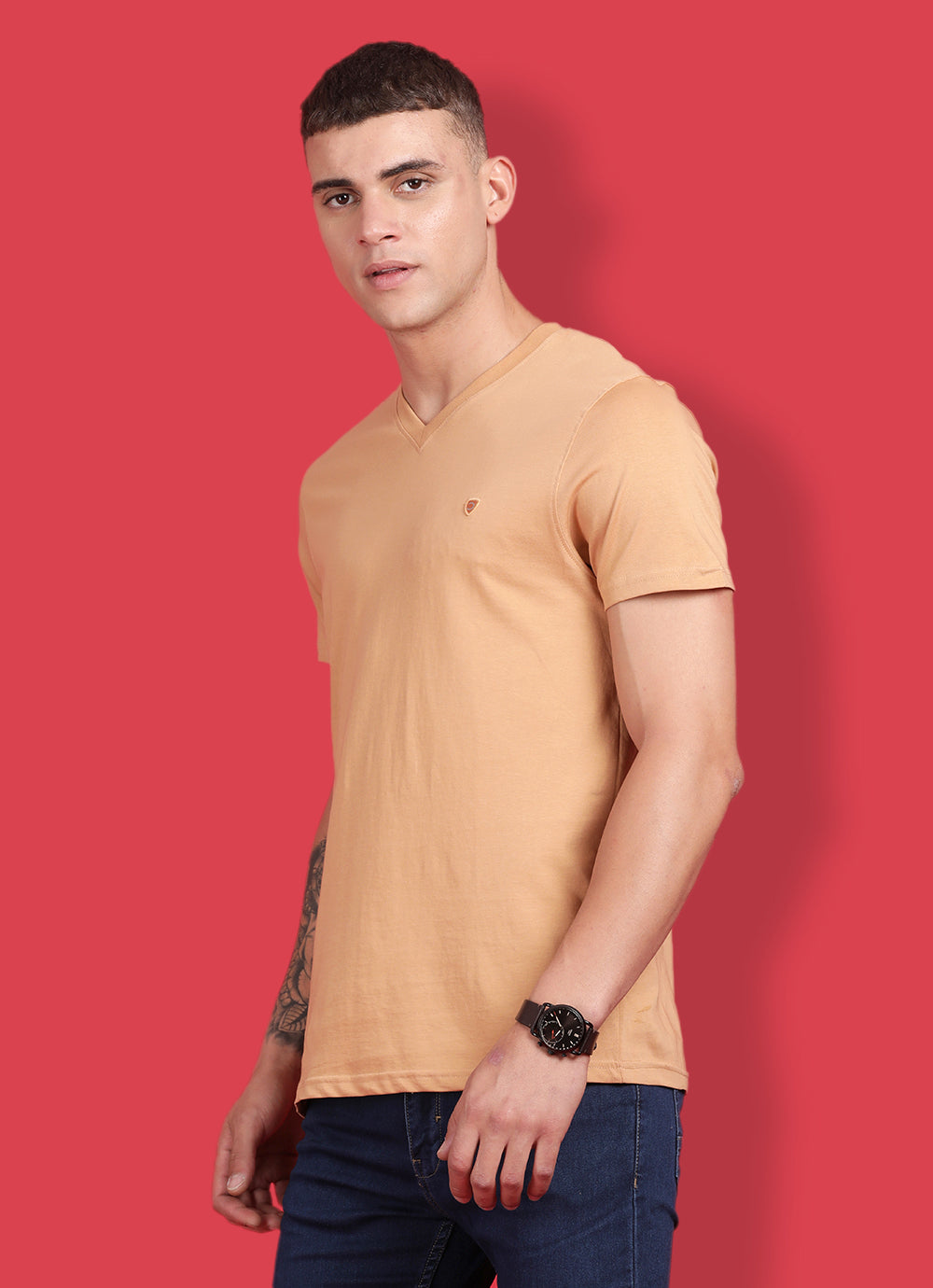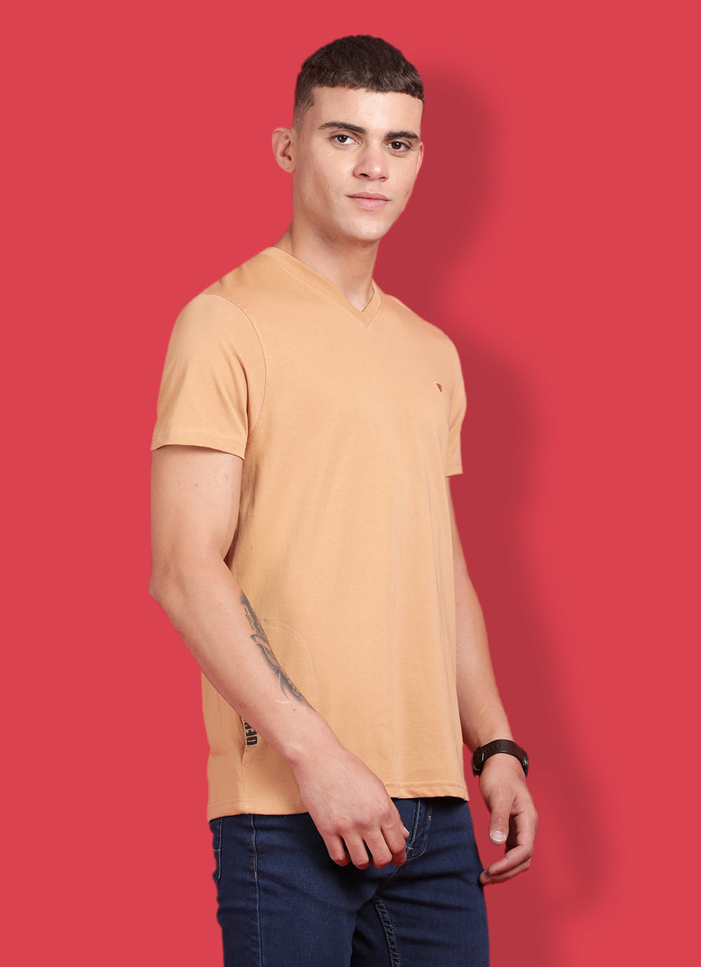 Unleash your wild side with our Yellow Cotton Slim Fit T-Shirt. Featuring a daring V-neck and a concealed side pocket, it's a must-have for fashion daredevils. Rock it with cargo pants and bold sneakers for an edgy, on-the-go look that's perfect for music festivals and urban adventures. Embrace the fashion frenzy!